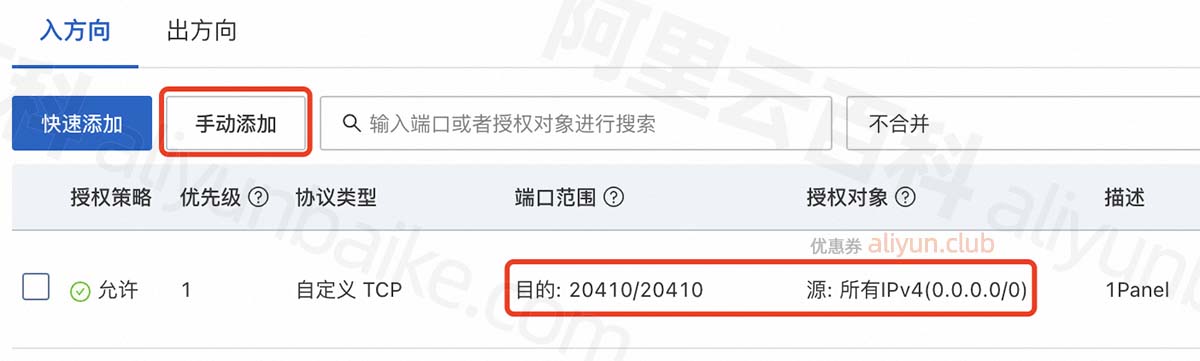 阿里云服务器开通1Panel端口