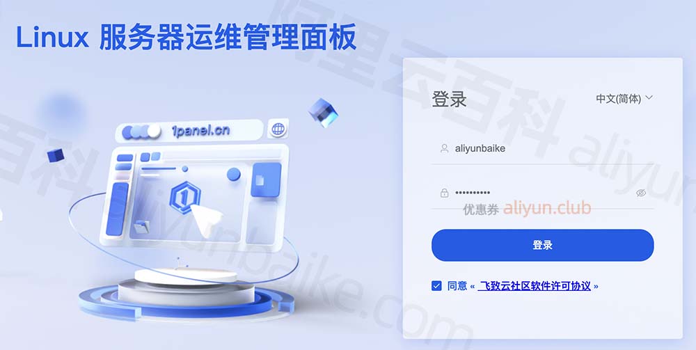至此,使用阿里云安装1Panel服务器Linux面板全流程完毕,可以在阿里云CLUB中心 aliyun.club 领取云服务器优惠券和价格表。