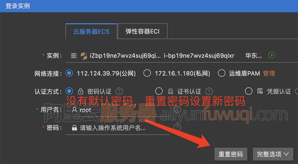 阿里云服务器没有默认密码,设置密码