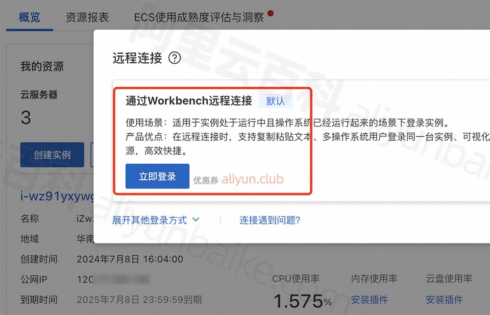先远程连接到云服务器ECS上,然后执行1Panel安装命令,安装成功后,设置默认端口号、安全入口、面板用户、面板密码,可以在阿里云CLUB中心 aliyun.club 领取云服务器优惠券和价格表。详细教程如下: