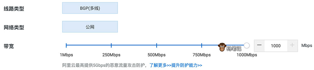 码笔记测试了一下在不同带宽峰值下EIP的价格,包年包月按固定带宽1000M一个月价格大约是7万多元;按量付费按固定带宽计费500M一天是1600多元;关于阿里云弹性公网IP(EIP)更多带宽选择及费用可以参考官方说明: