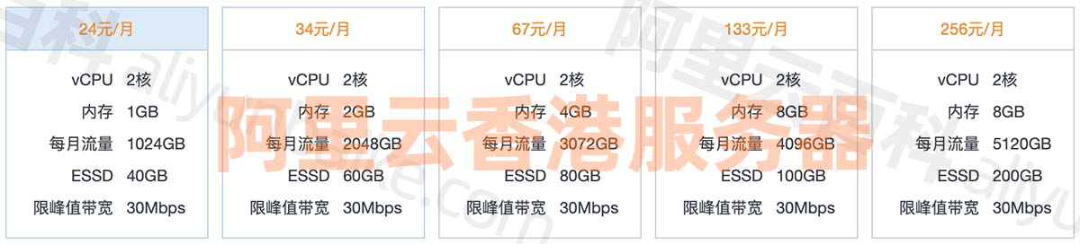 | 阿里云香港云服务器 | CPU内存 | 公网带宽 | 系统盘 | 月流量 | 租用费用 aliyun.club |