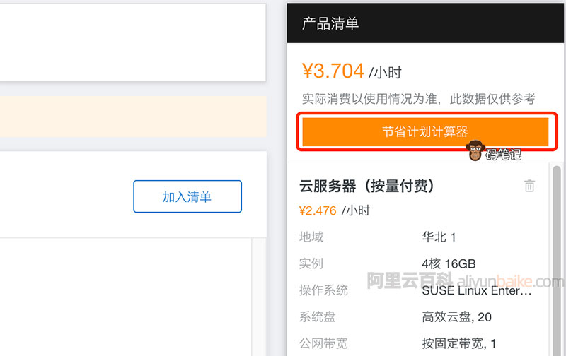 码笔记分享阿里云节省计划价格计算器,可以使用节省计划计算器来估算一下承诺消费金金额。