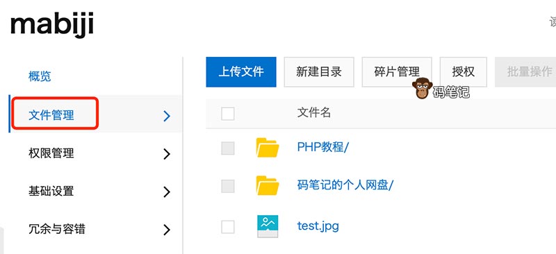 进入你的Bucket内,可以使用左侧栏的文件管理功能创建目录、上传文件等操作。
