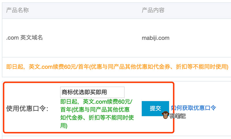 阿里云域名续费优惠口令