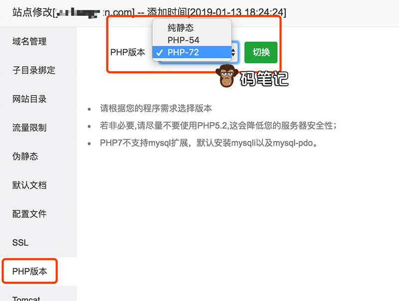 步骤二:站点切换PHP版本