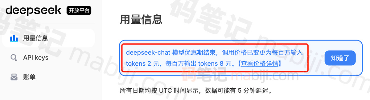 更新时间:2025年2月9日,deepseek-chat模型优惠期结束,调用价格已调整: