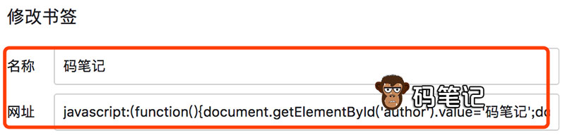 javascript:(function(){document.getElementById('author').value='码笔记';document.getElementById('email').value='396129106@qq.com';document.getElementById('url').value='https://www.mabiji.com/';})()