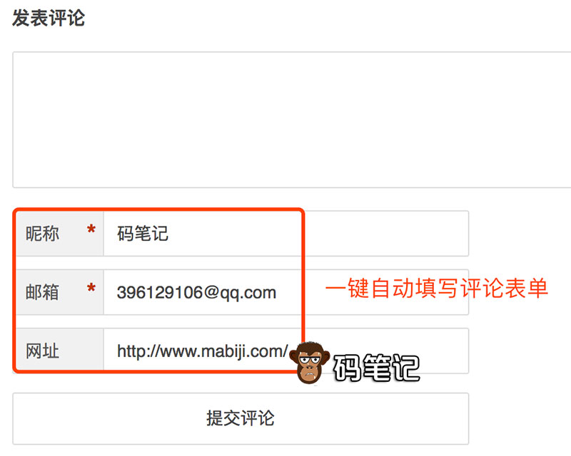 以码笔记博客为例,本站自动填写表单信息效果如下: