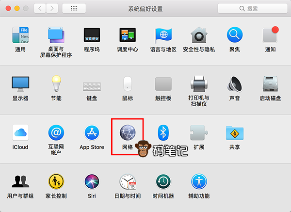 点击左上角的苹果--“系统偏好设置”--“网络”