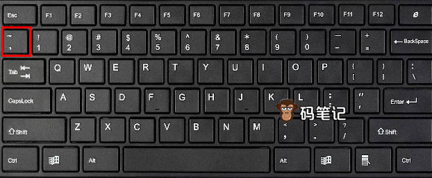 如上图所示,数字1左侧的按键就是这个符号,在Markdown语法里,英文输入法下,数字1左侧的按键就是插入代码的符号。