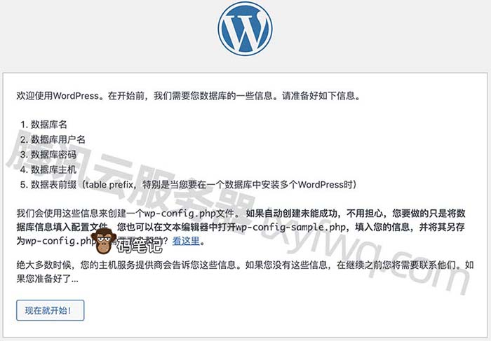 5、浏览器输入域名,安装WordPress程序,熟悉的WordPress安装页面,如下图: