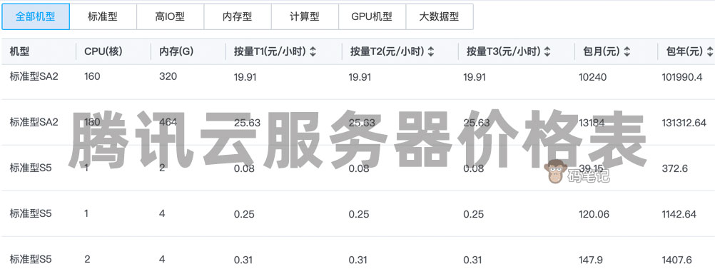 以上为腾讯云服务器价格表,实际报价请以腾讯云官网为准: