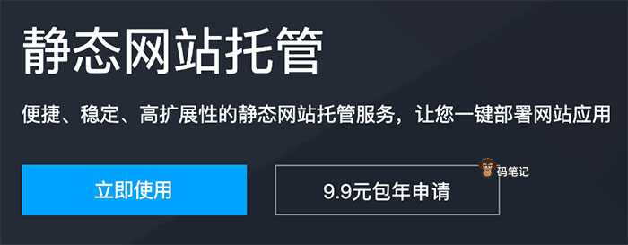 如果是纯静态的网站不需要购买云主机或者虚拟空间,阿里云和腾讯云都有解决方案,码笔记来详细说下静态网页托管的方法: