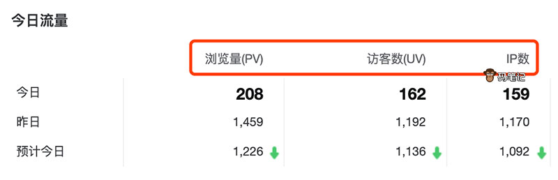 网站统计或者网站运营经常会提供的PV、UV和IP数分别指什么?PV是指页面浏览量、UV是指独立访客数、IP是指IP数,码笔记来说说网站访问统计PV、UV和IP数详解: