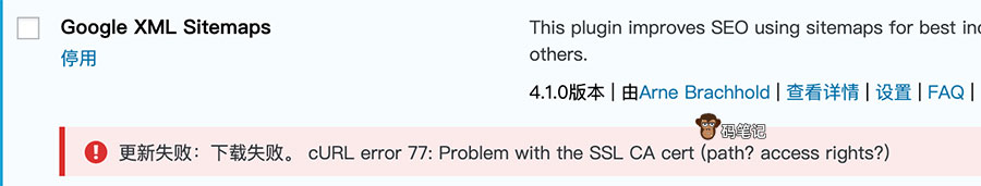 WordPress更新失败:下载失败。 cURL error 77的解决方法