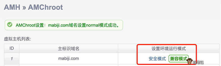 AMChroot设置:mabiji.com域名设置normal模式成功。